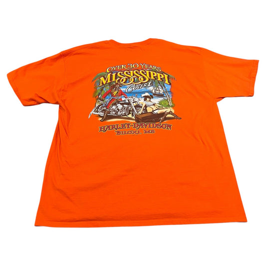 Harley Davidson Shirt Mens 2XL XXL Over 30 Years Mississippi Coast Orange Biloxi
