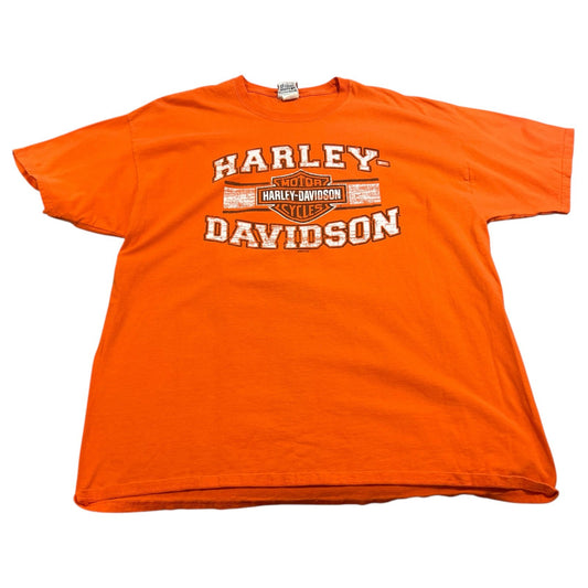 Harley Davidson Hanes Vehicle City Flint Mens 2XL XXL Orange Short Sleeve