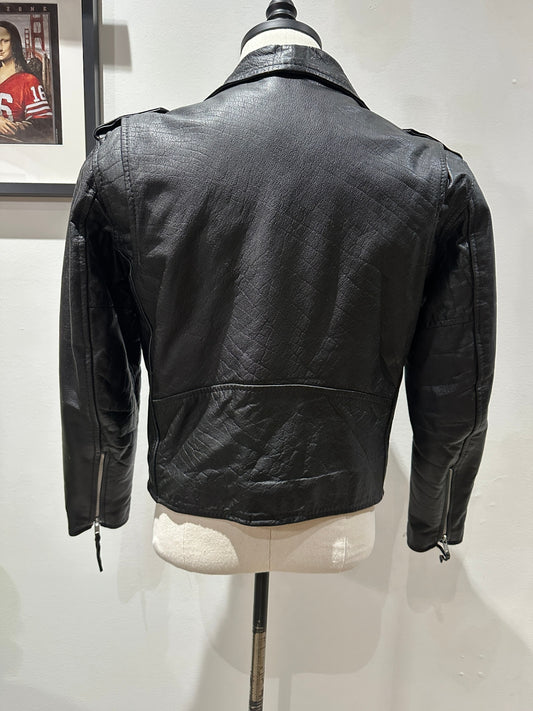 (Mens Medium) Black Biker Style Leather Jacket